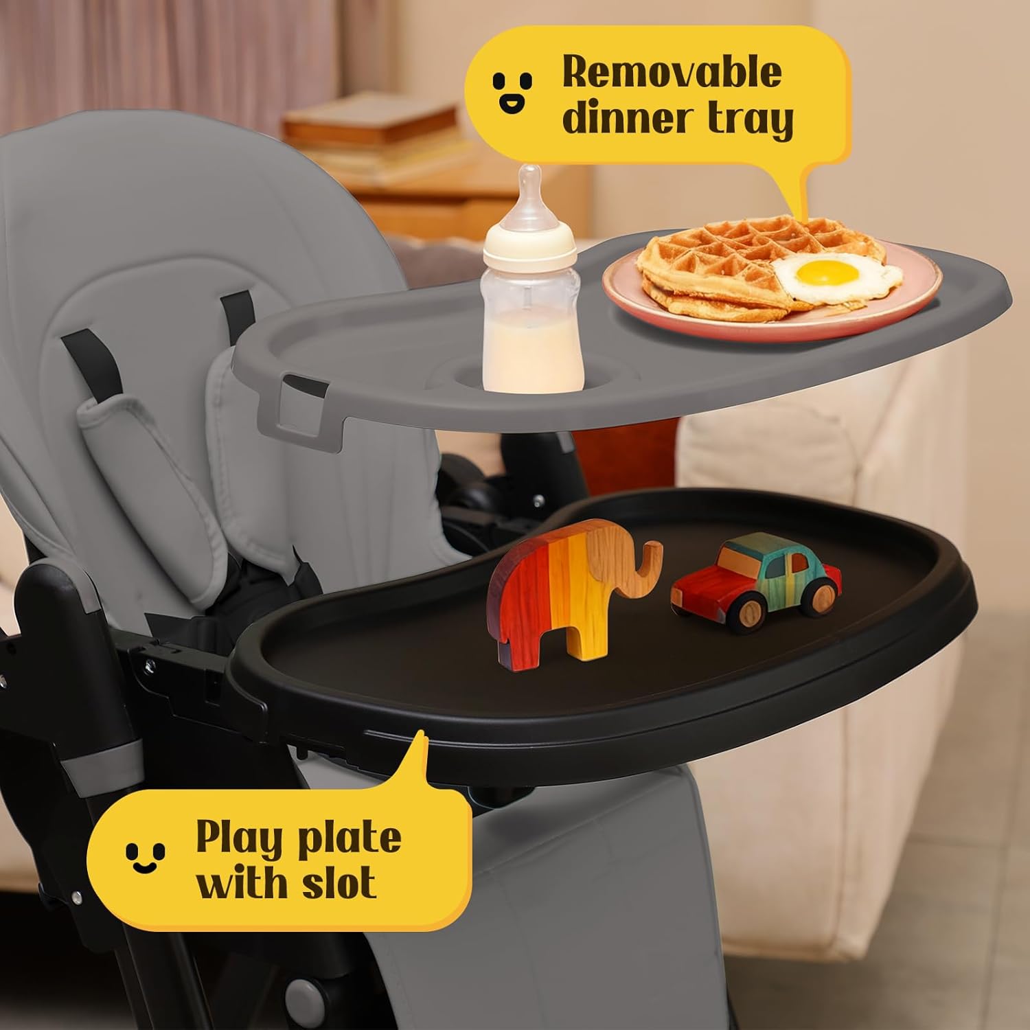 【Effortless Cleaning for Busy Parents】: Say goodbye to mealtime mess stress! The entire removable tray is top-rack dishwasher safe, and the waterproof seat cushion wipes clean in seconds. We simplified hygiene so you can enjoy more quality time.