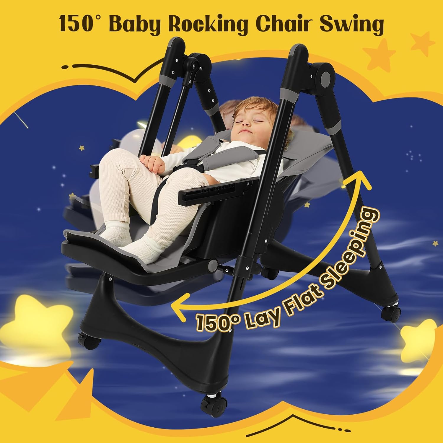 【Ultra-Safe for Active Babies】: Engineered for peace of mind, especially during rocking. Features a wider anti-tip base, lockable wheels for stability, and a secure 5-point safety harness. Robust construction safely supports up to 50 lbs for years of worry-free use.