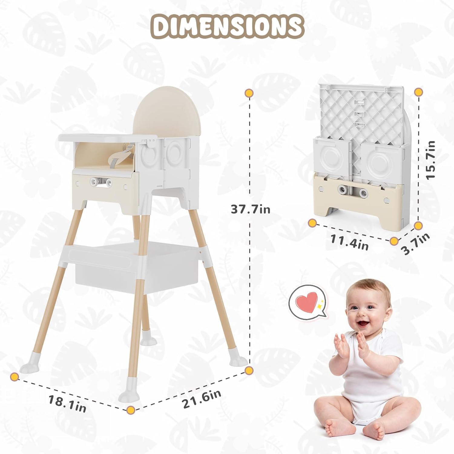 Transformable & Space-Saving: The foldable highchair converts between multiple configurations while storing compactly – ideal for living spaces.