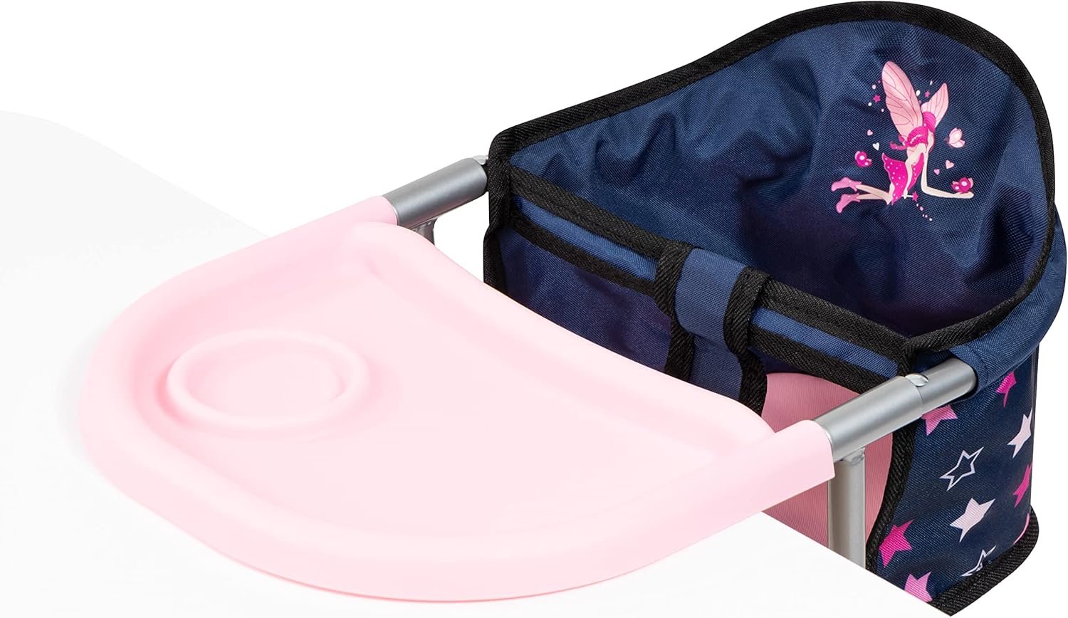 BAYER DESIGN DOLLS: TABLE SEAT – NAVY, PINK, STARS, FAIRY – The modern table seat for dolls has a beautiful design with a great color combination, engaging and keeping your little ones excited to start playtime with their little ones. The able seat provides amble space for the dolls and stuffies up to 18 inches/46 cm. The integrated feeding tray makes it easy to feed the doll or stuffie. The table seat can be easily folded and thus stored in a space-saving and convenient way for the next playtime. Due to its handy format, the doll and stuffie seat can easily be taken everywhere, so that the favorite doll and stuffie always has the right place next to the doll and stuffie’s parents. The seat is a great doll/stuffie accessory encouraging them to feed their littles ones and develop their roleplay and caretaking skills for your little ones development. Designed for dolls up 18″ (46cm) * Doll not included. Suitable for boys and girls ages 3 and up.