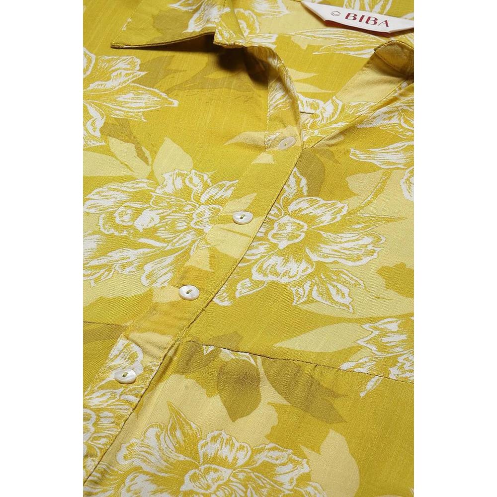 BIBA Women’s Olive Printed Rayon Straight Dress