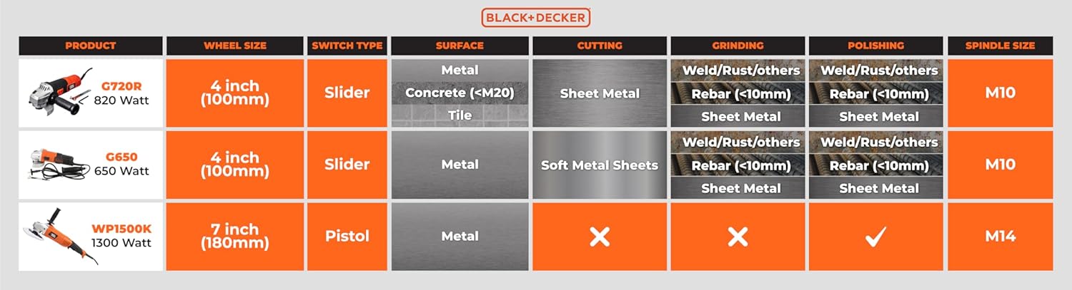 820 watt, 4-inch angle grinder is sturdy, lasts long and can be easily carried in toolbox