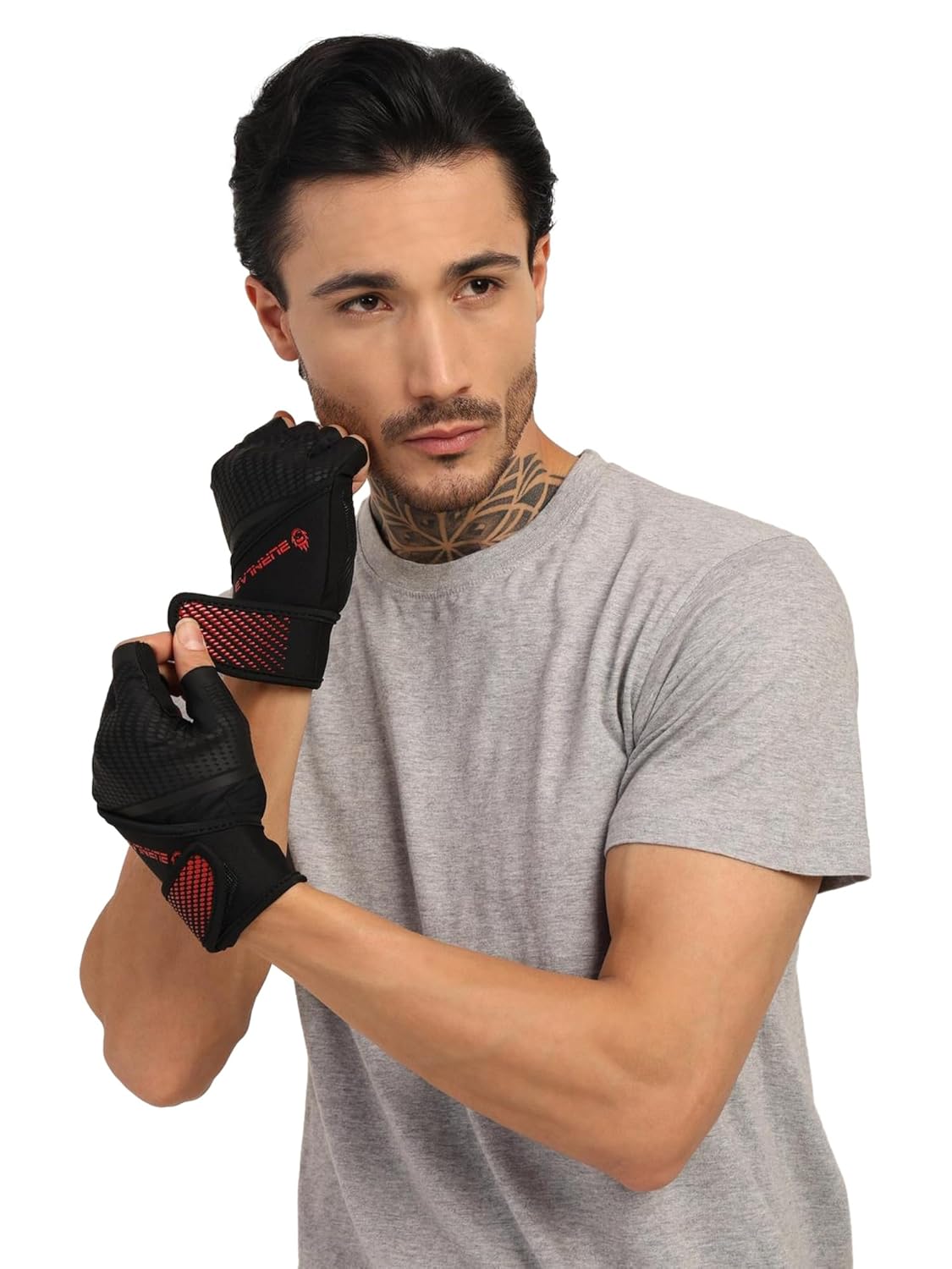 BURNLAB Flex Wirst Support Gym Gloves for Men and Women – Ideal for Weightlifting, Cycling, Crossfit, Offers Good Grip and Soft Padding (Black & Red, XL)