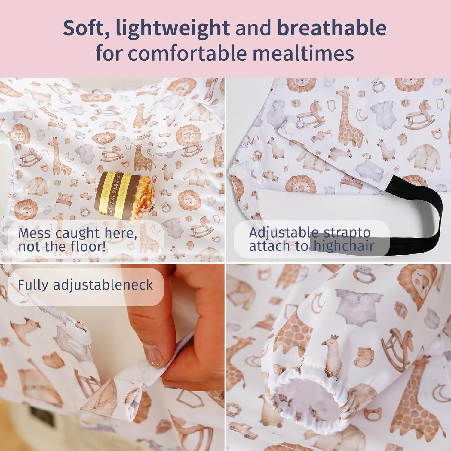 CoolaPeach Long Sleeve Baby Bib – Mess-Proof Feeding Bibs for Babies – Adjustable, Waterproof, and Highchair/Table Attachment