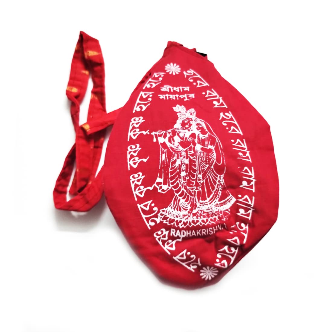 MAYAPURI Beautiful Chanting Bag made of Cotton Hare Krishna printed cloth, durable, soft and washable. The bag has a proper string for proper hanging. Mala pocket for worship. Crafted from cotton material. Comes in Hare Krishna Printed. Size: 10 inch and breadth- 6 inch. with Sakshi Mala/Mala Counter.