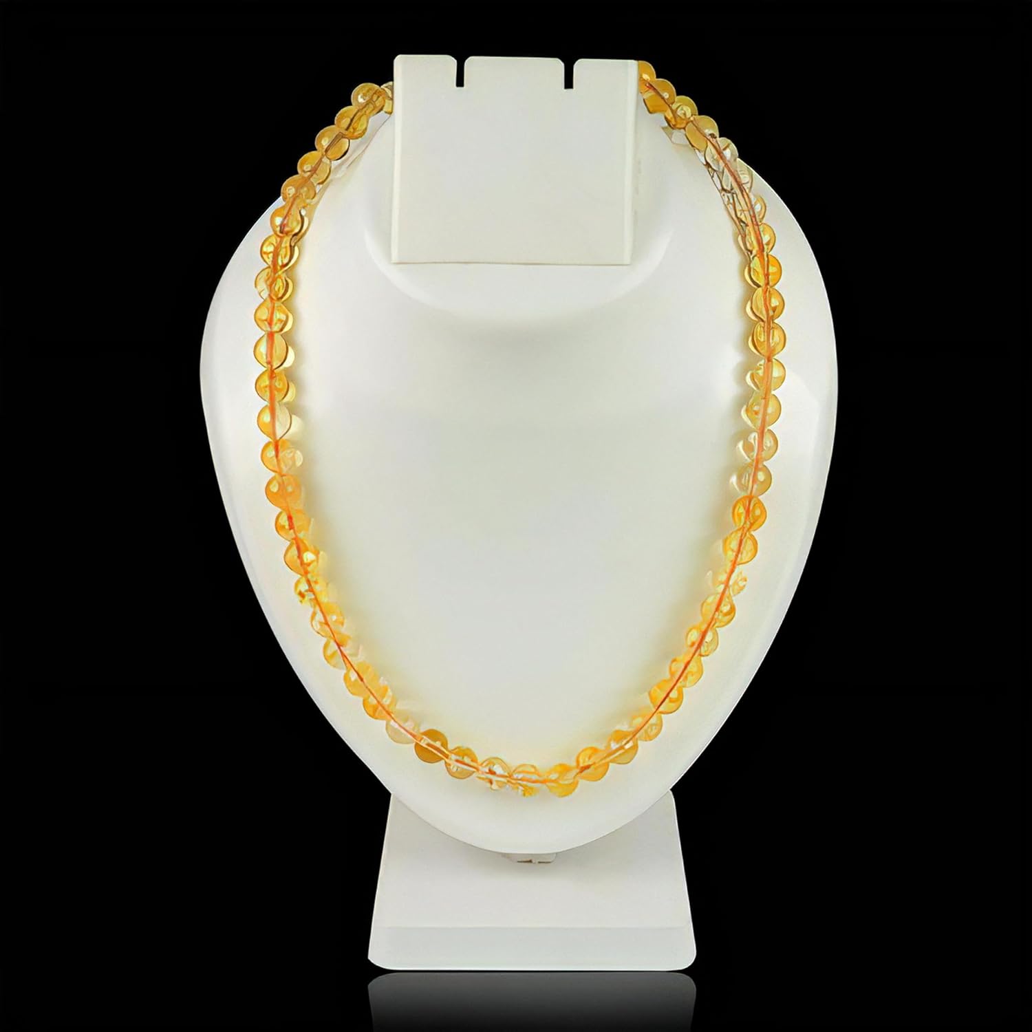 1) Citrine Stone Mala: Radiate Joy and Abundance. 2) Abundance Magnet: Known as the “Merchant’s Stone,” Citrine is associated with abundance and prosperity. Let this mala be a symbol of your intention to manifest wealth, success, and financial well-being. 3) Warm Golden Glow: The mala showcases the warm and golden hues of Citrine, creating a visually stunning and versatile accessory. 4) Optimism and Positivity: Citrine is believed to dispel negative energies and inspire a positive outlook on life. Embrace the optimistic energy of this mala as you navigate challenges with resilience. 5) Creativity and Manifestation: Citrine is linked with the solar plexus chakra, supporting creativity and personal power. Use this mala as a tool for manifesting your goals and expressing your unique talents. 6) Versatile Style: Beyond its metaphysical benefits, the Citrine Stone Mala seamlessly integrates into your style. Whether for daily wear or special occasions, it adds a touch of warm elegance to your ensemble. 7) Thoughtful Gift: Share the joyful and abundance-attracting energies of Citrine with loved ones. This mala makes for a thoughtful and meaningful gift, especially for those embarking on new ventures.