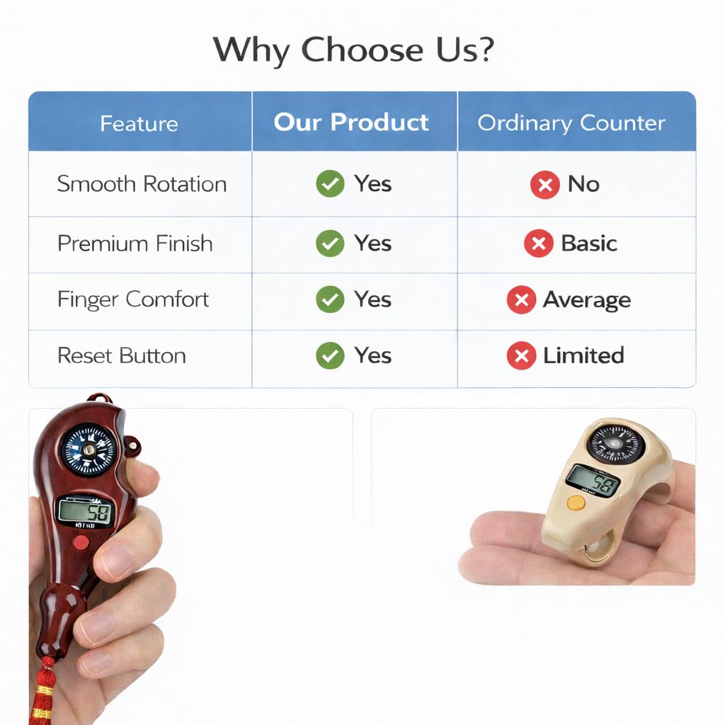 SIMPLE ONE-FINGER OPERATION: Designed for easy one-hand use with a smooth rotating dial and reset button, allowing effortless counting during long meditation and chanting sessions.