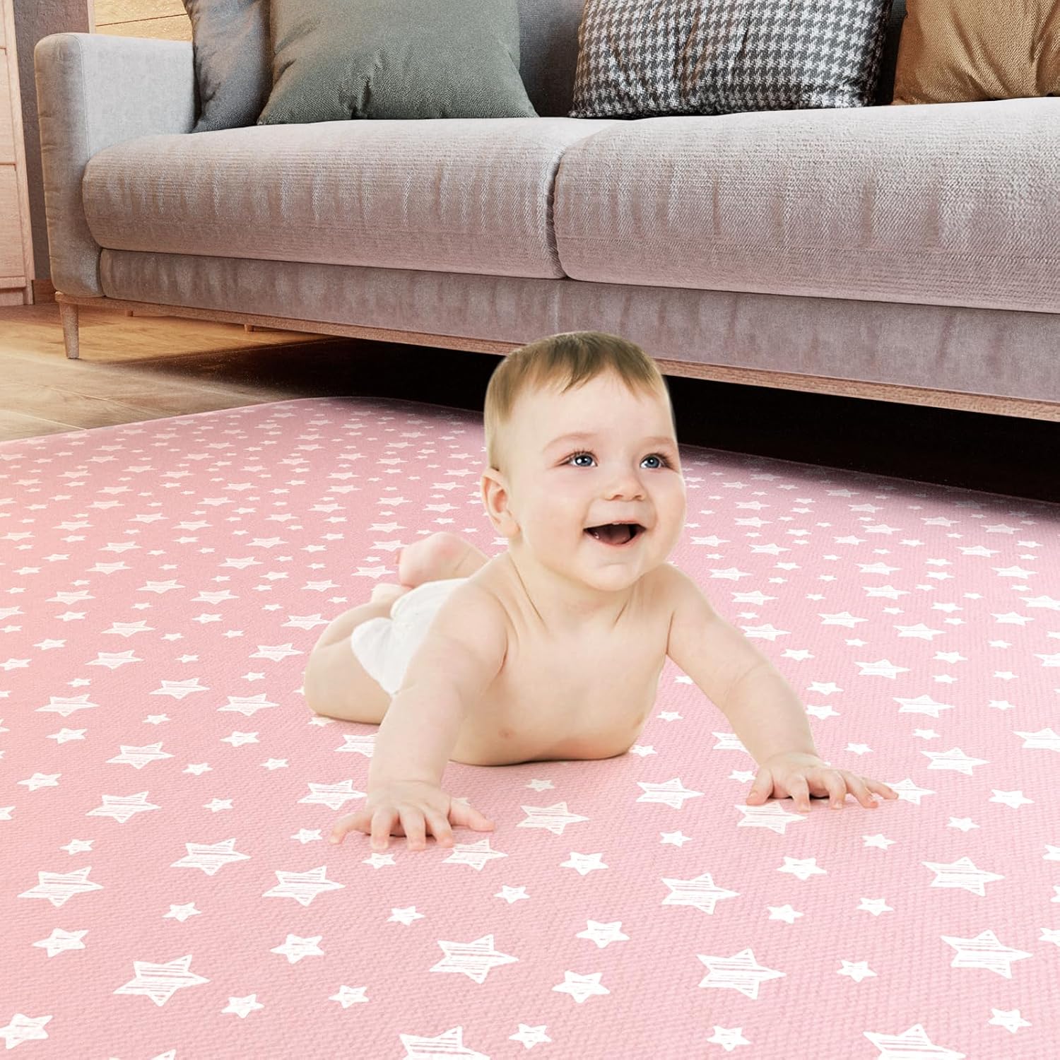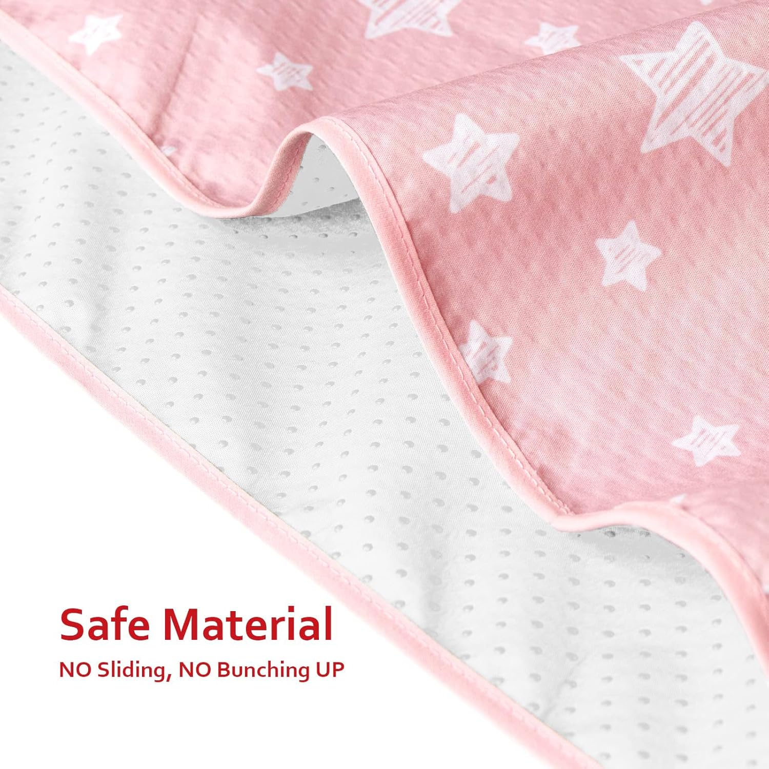 Craftsmanship – There are 3 layers of the mat, top with lovely pink star print fabric, inside impermeable waterproof membrane and bottom anti-slip material, means no worrying about bunch-up between layers of fabric.