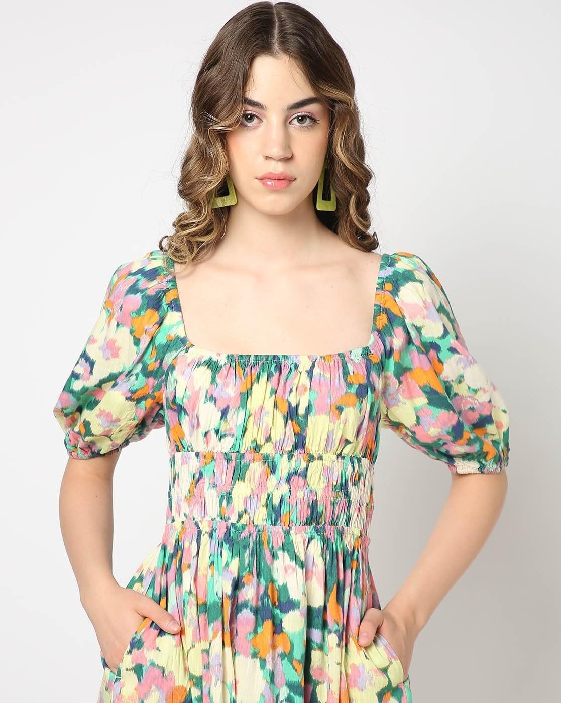Gap champions a uniquely optimistic sense of American style that bridges the gaps between individuals, generations, and cultures. Bring a floral flair to your wardrobe with this slim-fit dress. Featuring a square neckline, half sleeves, and shirring detail, it’s perfect for casual outings. MACHINE WASHABLE: Easy to care for, this tee can be washed with like colors on the gentle cycle.