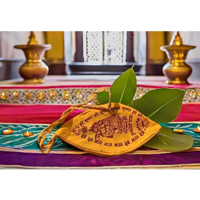 The jaap bag is composed of silky fabric on the inside and pure cotton on the outside. You’re set to go once you put your beads in the bag. This bag has a large enough side on which you may put your hand. To help you grip the bag, your index finger emerges from the smaller hole on the opposite side.You will keep the sacred jaap beads clean and off the ground while chanting by keeping them in a bead bag. The 108-piece Tulsi Masala and Cotton Hare Rama Hare Krishna Gau Mukhi bead set is part of the VinodRatna Stores Combo Pack. Two necessary materials for chanting and prayer are included in this pack, ensuring a full spiritual experience. The 108-bead Tulsi Masala in the set is made by hand using holy tulsi beads. In Hindu traditions, tulsi is highly valued for its spiritual importance and is thought to improve concentration and dedication during chanting and prayers. A Cotton Hare Rama Hare Krishna Gau Mukhi, a devotional mala devoted to the worship of Lord Rama and Lord Krishna, is also included in the bundle. The mala has Gau Mukhi beads, which are considered to have auspicious qualities, and is composed of cotton strands. During prayer and chanting sessions, both malas are intended to assist you with counting and concentration. For spiritual searchers, they are effective instruments that facilitate a closer relationship with God. Additionally, the set comes with a Jaap Bag, which offers a practical and revered place to transport and store your malas. Your spiritual accessories will be preserved and protected thanks to the bag. VinodRatna Stores is pleased to provide this Combo Pack as a comprehensive set for anyone looking to develop a consistent prayer and chanting routine. In addition to offering a chance for spiritual development and inner calm, the pack acts as a reminder of the value of dedication.