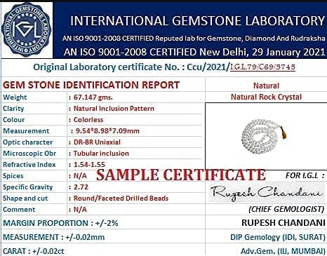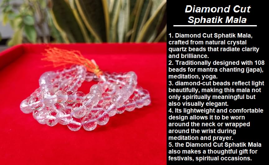Diamond cut mala built in strong thread of parachute. Mala has a glossy look all beads look like diamond and have extra natural shine. Very good for health and wealth as sphatik works for Venus which give health and wealth.