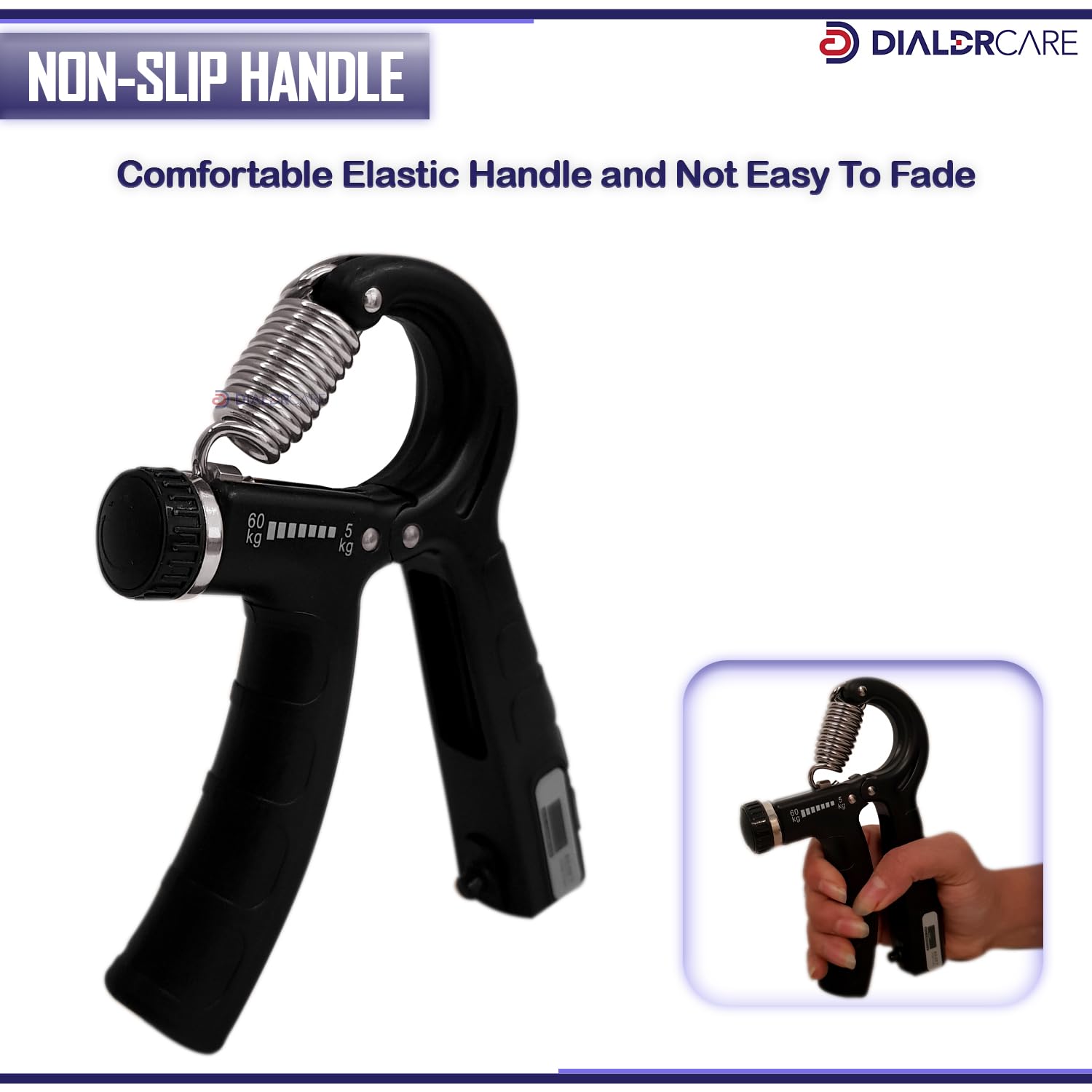 DIALDRCARE Hand Grip Strengthener with Adjustable Resistance 5-60kg, Wrist Strengthener with Counter for Muscle Building and Injury Recovery (Black)