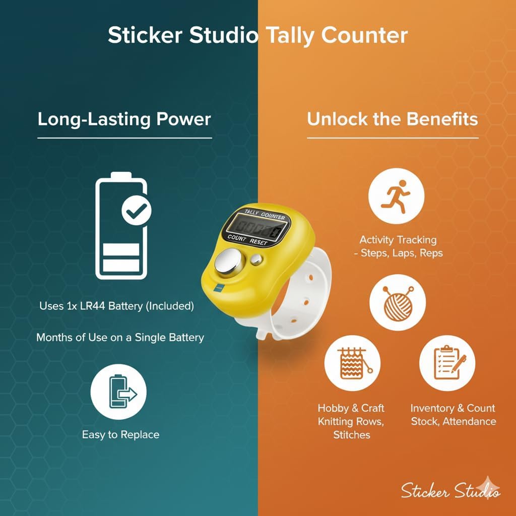 ✔️ Long-Lasting LR44 Battery Included: Each unit in the pack comes with a pre-installed LR44 cell that delivers months of reliable use; minimal power consumption ensures uninterrupted counting for sport, craft, business or personal routines without frequent battery replacements.