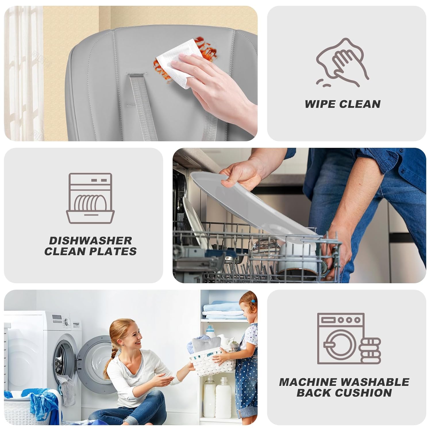 【Crumb-Free Design】Removable tray with 2-layer filtration, machine-washable PU seat cover with an extra soft cushion (no more trapped food like traditional fabric).
