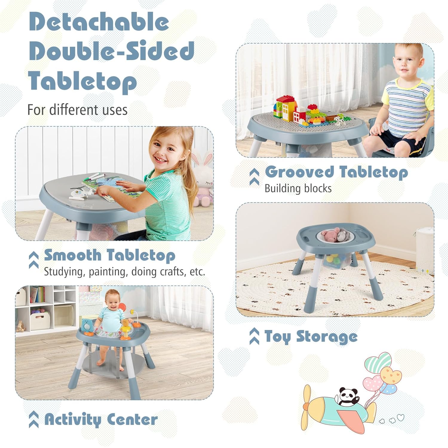 Double-sided Table with Storage: Engineered to grow with your child, this transforming highchair becomes a versatile table and chair set. Its dual-purpose tabletop offers a smooth surface for dining and artistic projects on one face, and a specialized blocking table on the reverse. The integrated storage basket beneath promotes independence by letting children access their favorite toys or books while maintaining clutter-free spaces.