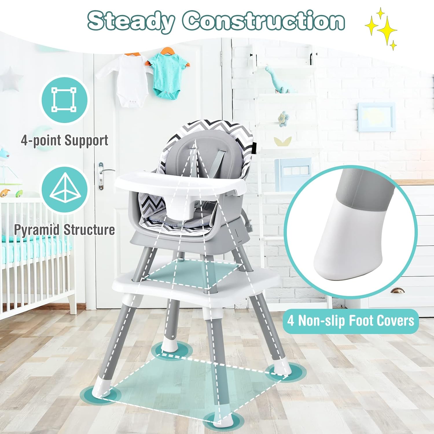 HONEY JOY 8 in 1 Baby High Chair, Convertible Highchair for Babies and Toddlers/Table and Chair Set/Building Block Table/Booster Seat/Stool/Toddler Chair with Safety Harness (Wave Gray)