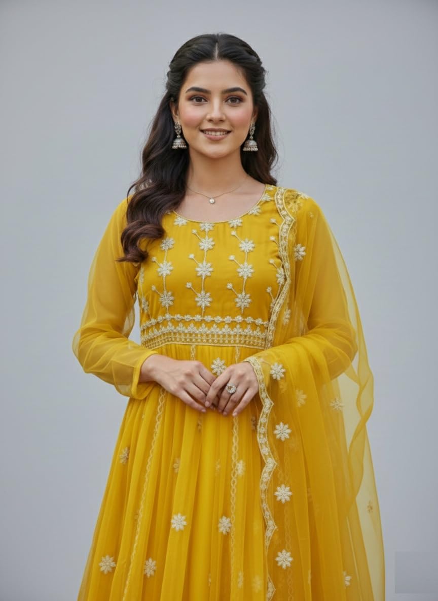 JULEE Women’s Net Embroidered Semi-Stitched Gown Roshni-Gem