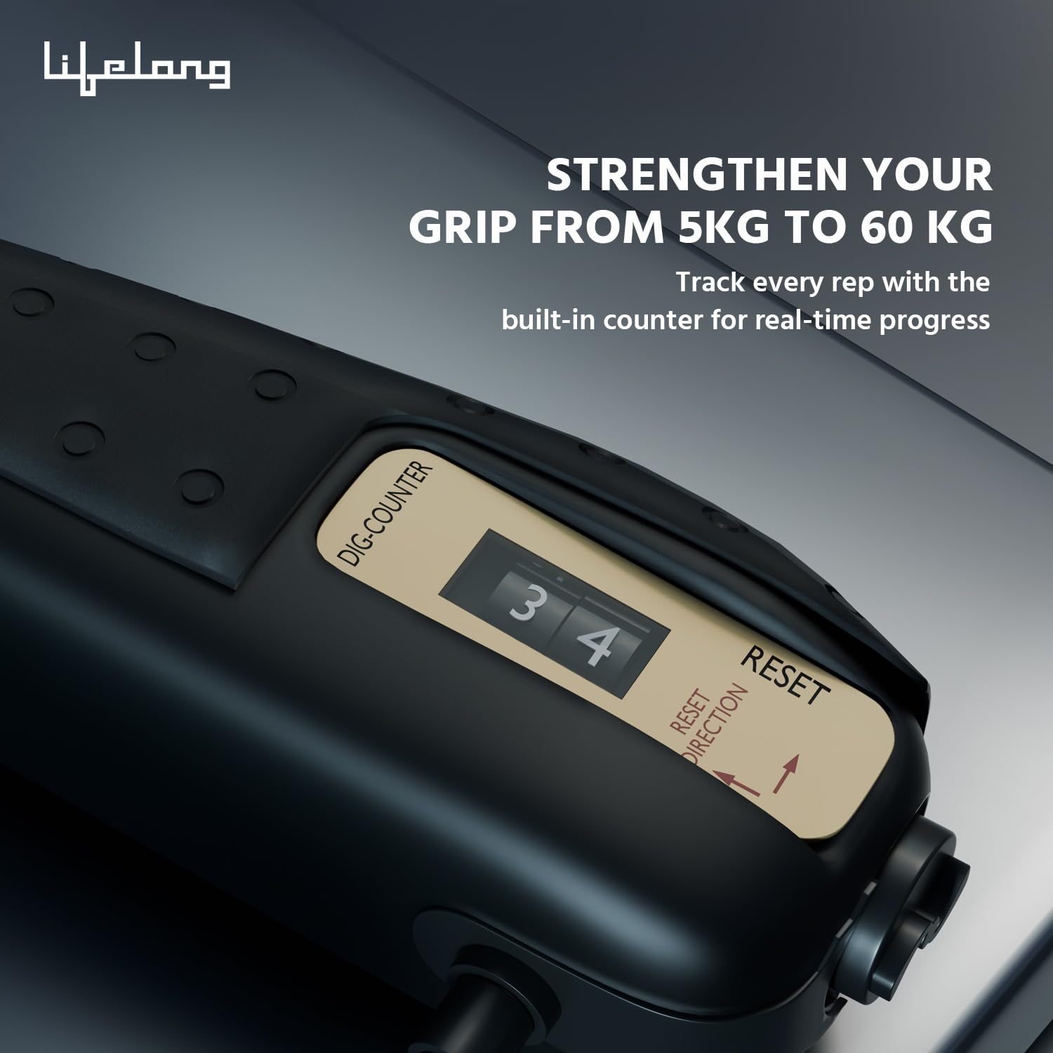 Lifelong Hand Gripper with Counter -Hand Grip for Men & Women- Adjustable Resistance 5-60kg -Forearm Strengthener -Physiotherapy Equipment for Hand-Forearm Gripper -Gym Accessories for Finger Exercise