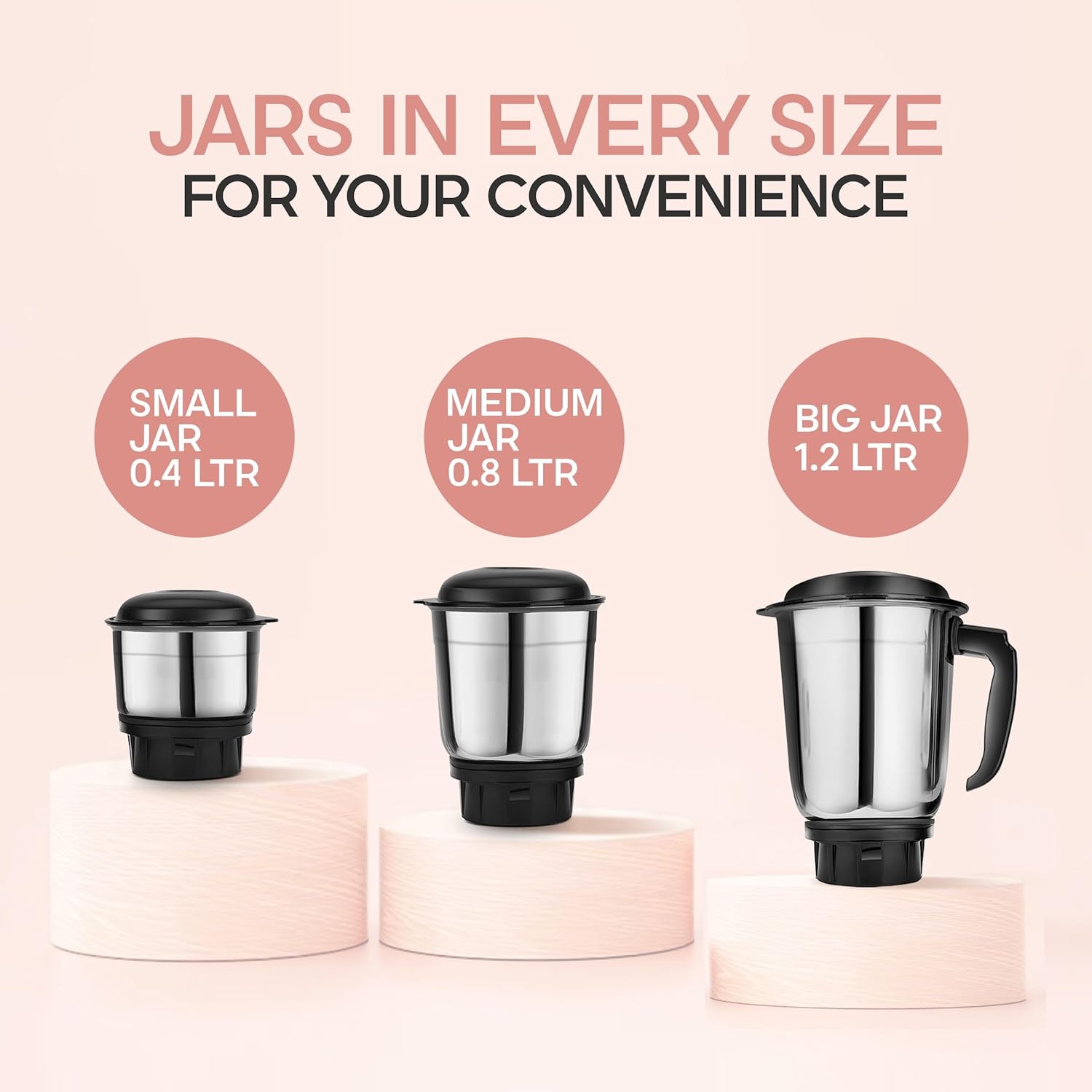 Multipurpose 3 Jars Set: Comes with 3 wide jars suitable for dry grinding, wet grinding, and chutney making, perfect for daily kitchen needs.