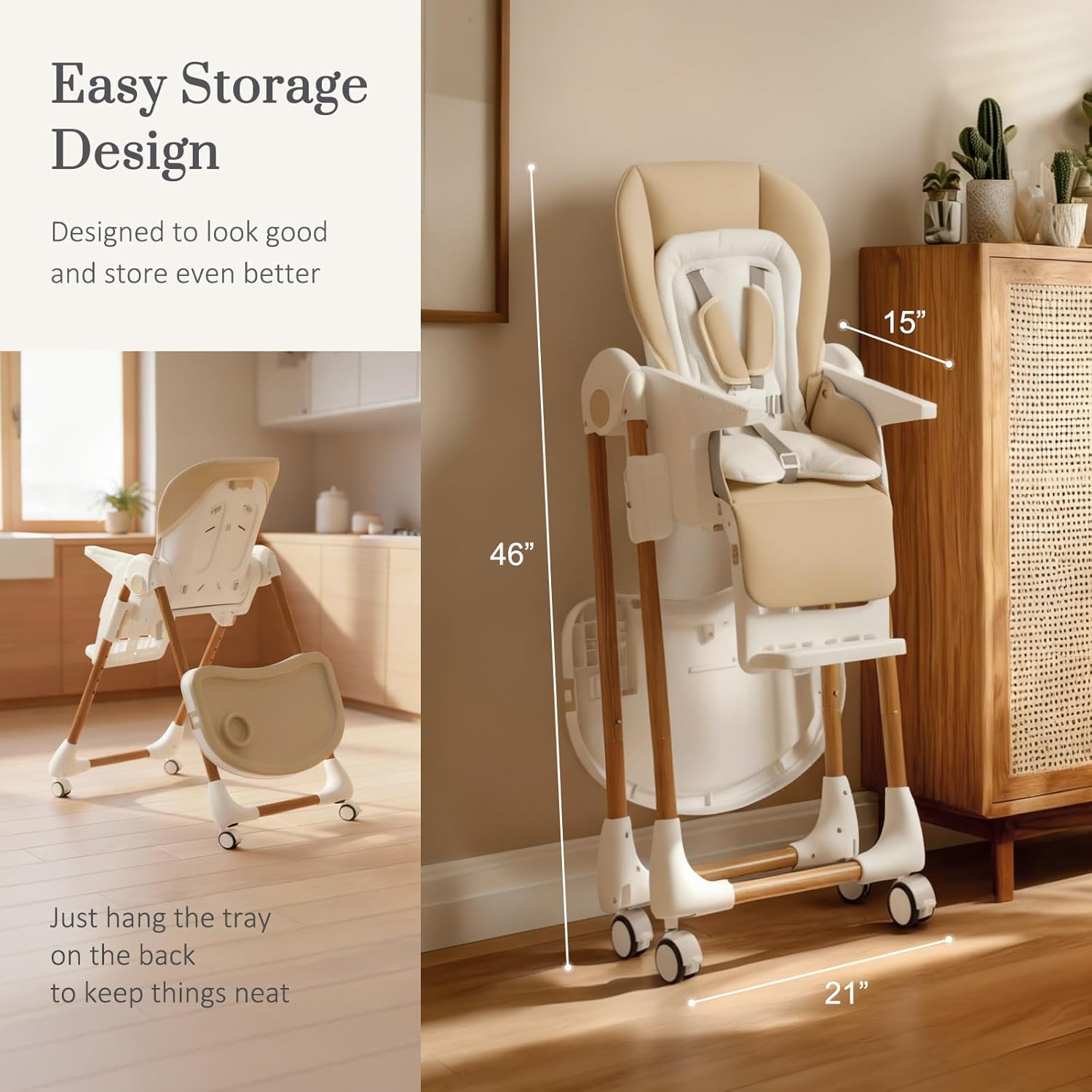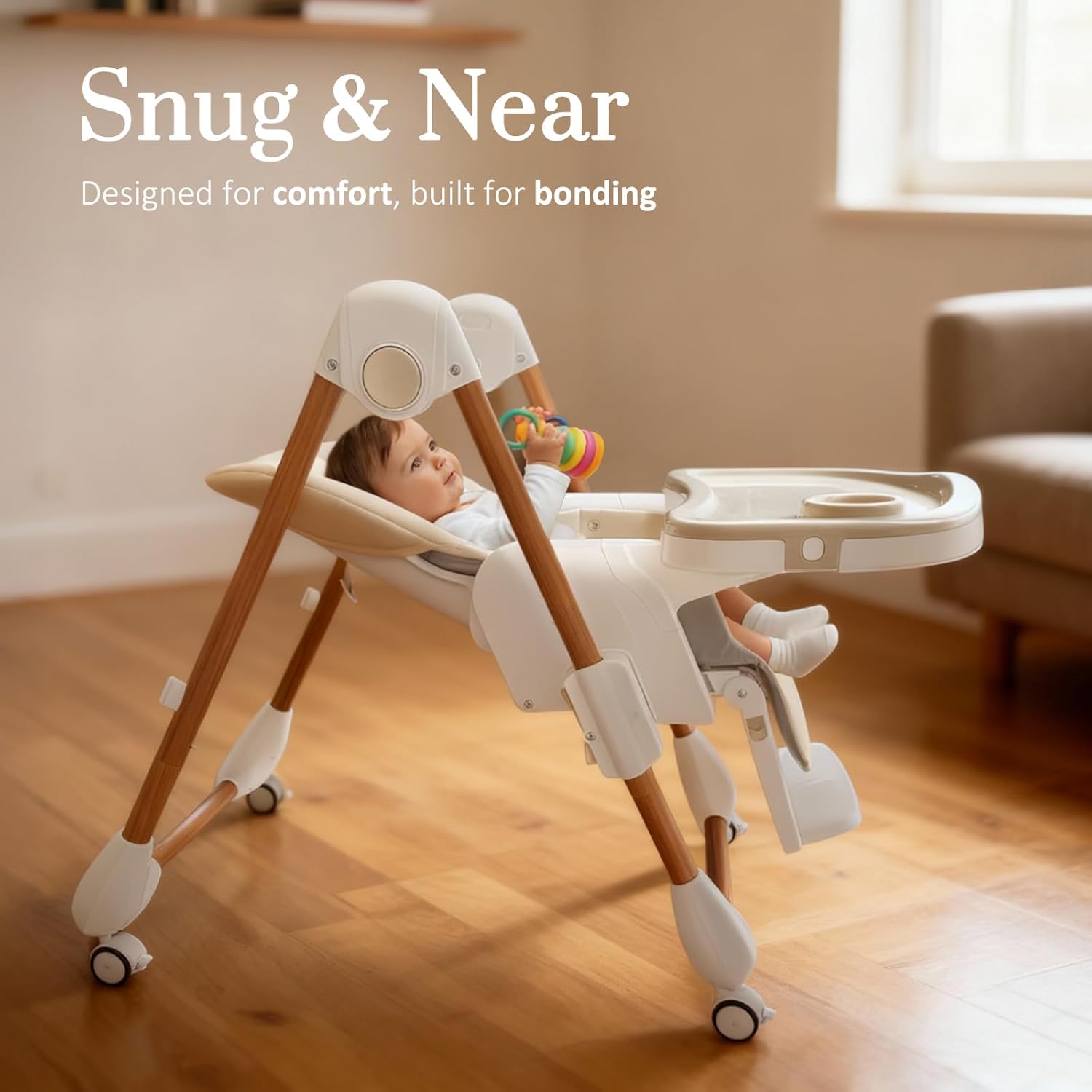 QUICK ASSEMBLY & COMPACT DESIGN: Assemble in minutes — no extea tools needed. With a quick-fold design and a side buttons, making the foldable high chair collapse smooth and effortless, storing away in a snap. Perfect for small spaces, or everyday use. Thoughtfully designed to be a cherished part of your family’s everyday moments