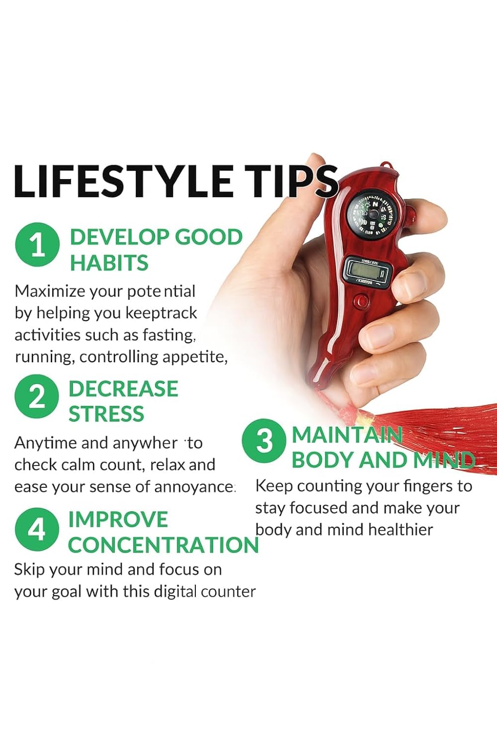 DIGITAL COUNTER: Features a clear LCD display with 5-digit counting capacity and easy reset button for accurate prayer or mantra counting
