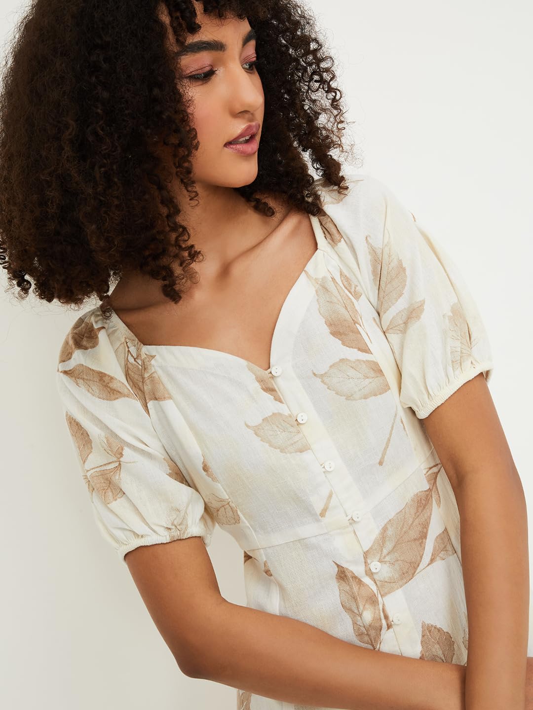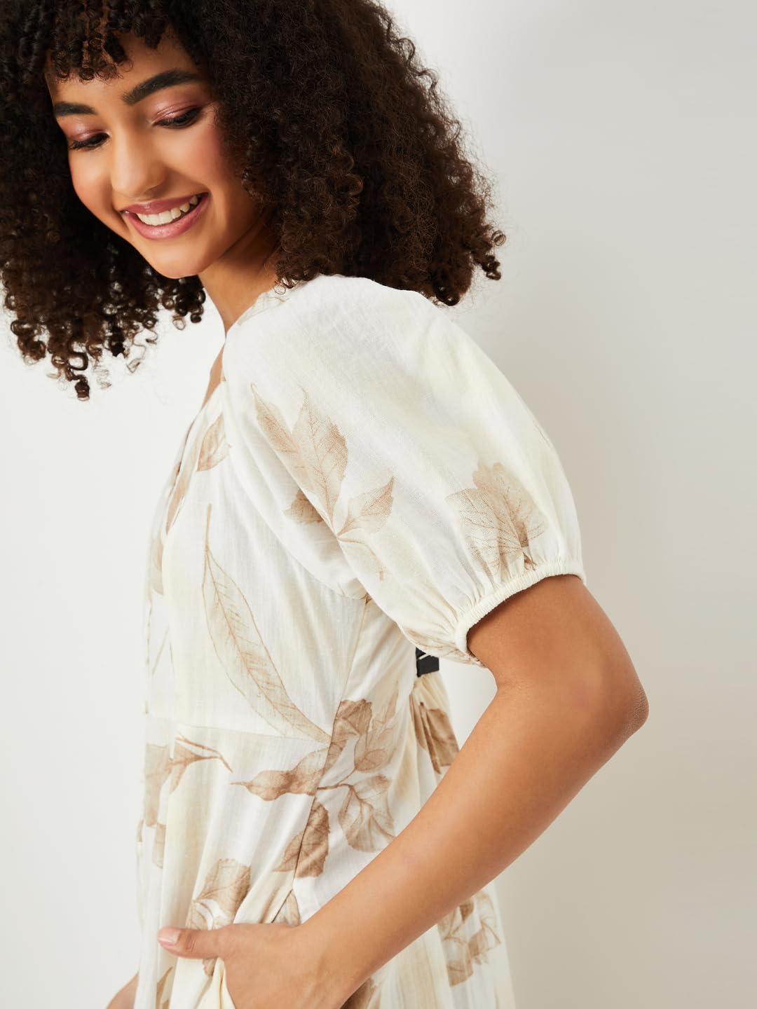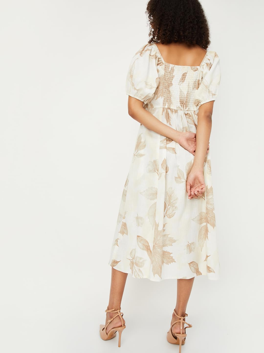 Max Women’s Half Sleeves Spread Collar Cotton Printed A-line Dress