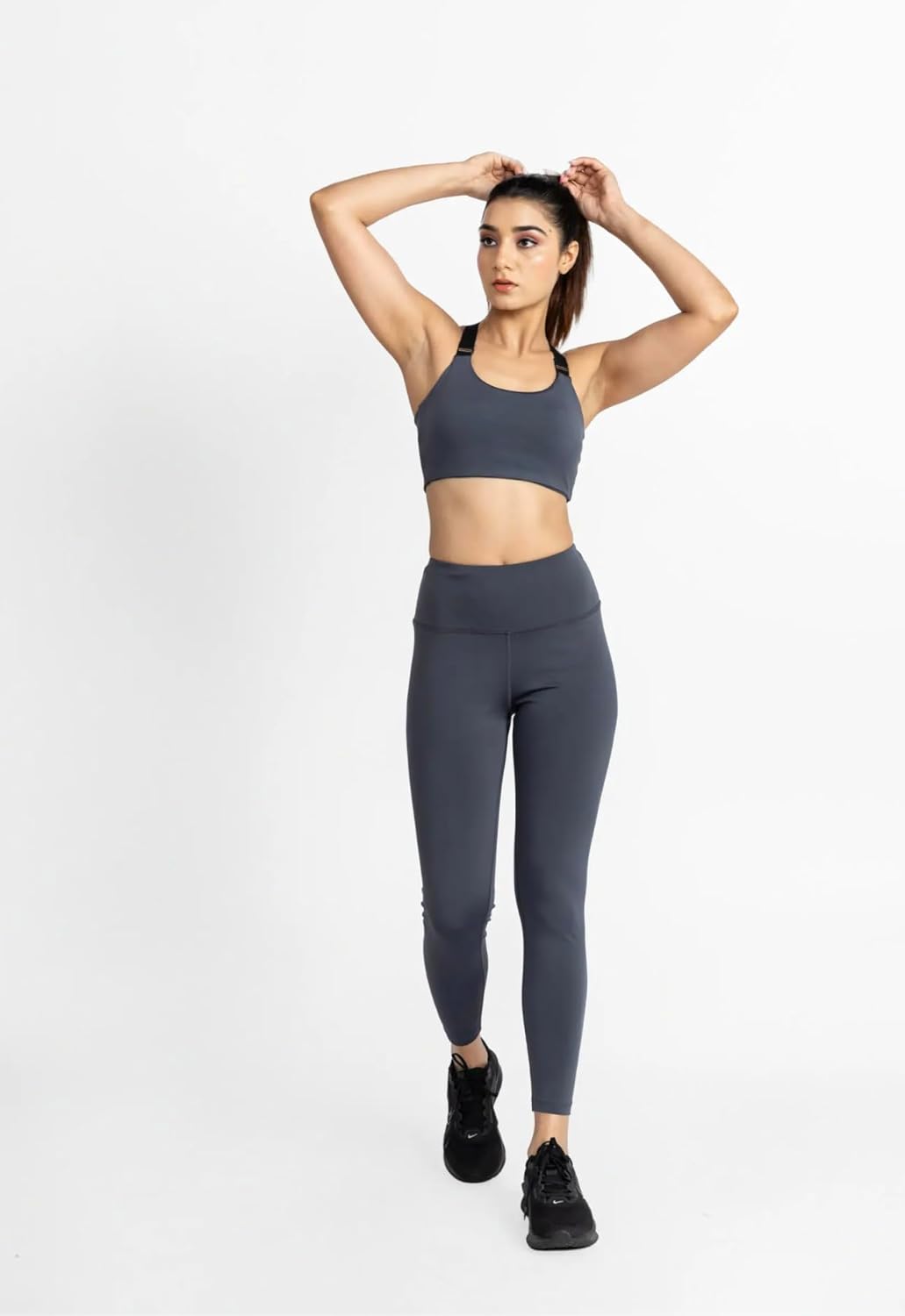 Modu women’s high support sports bra is designed to offer comfort, flexibility and stability during gym workouts, training sessions and active routines. Made with a blend of 90% polyester and 10% spandex, the fabric provides smooth stretch, a comfortable feel and ease of movement for everyday fitness. The sleek design allows for an active fit suitable for gym exercises, yoga, sports and casual athleisure wear. The wide straps and supportive fit help maintain comfort during movement, while the band sits securely without causing discomfort. The breathable material allows easy airflow, making it ideal for long hours of activity. The bra pairs well with leggings, track pants and shorts, giving you a clean and sporty look. Available in classic Black and Ash Grey, the Modu sports bra offers versatile styling options for fitness and casual outfits. With sizes from S to L, it is designed to provide a snug yet flexible fit for different body types. Whether you’re training, walking, stretching or on the go, this sports bra combines comfort, functionality and a modern activewear appearance.