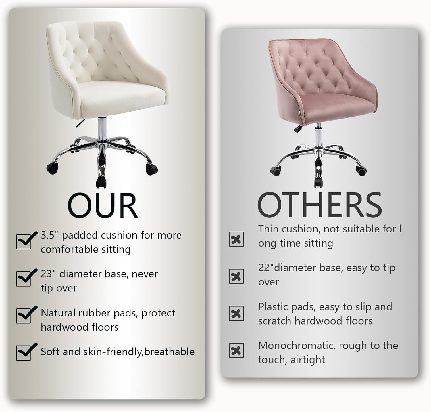 ELEGANT & COMFORTABLE: High-grade velvet fabric is used as a surface covering + high-density foam-filled seat, which has a certain degree of flexibility, making this desk chair exceptionally comfortable. The backrest and armrests ensure you with extreme comfort