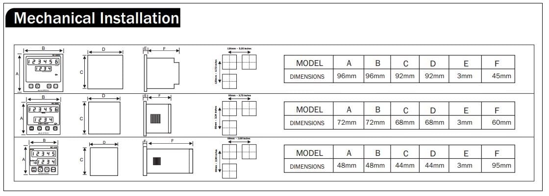 DIMENSION ( HxWxD )mm : 72x72x45 , PANEL CUTOUT : 68x68mm