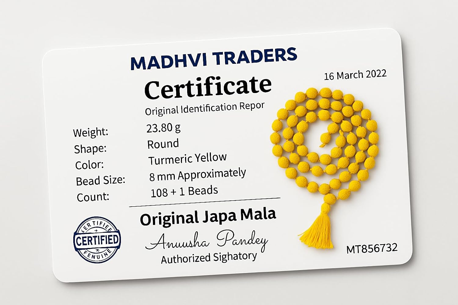 Ayurvedic & Spiritual Benefits: Turmeric is revered in Ayurveda for its purifying, healing, and fertility-enhancing properties, making this mala powerful for holistic wellness.