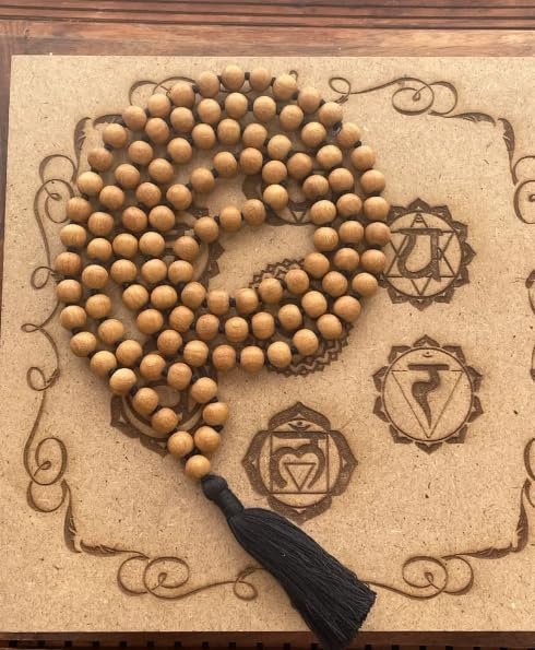 Auspicious White Sandalwood Mala For Men & Women, This Mala Is Made Up Of 108 Beads And You Can Use This Mala For Meditation Purpose, Chanting Purpose (Jaap) And Pooja Wearing Purpose
