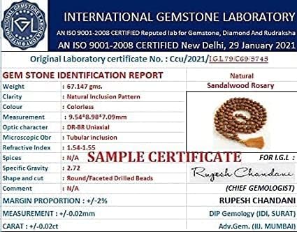 Cultured White Chandan Mala Original Certified Chandan (Sandalwood) Mala Is Considered Highly Auspicious And Is Used For Both Jaap And Wearing Purposes, Chandan Represents Of Lord Vishnu And The Ruling Planet Of Chandan Is Rahu. White Chandan Is Mostly Found In North India.