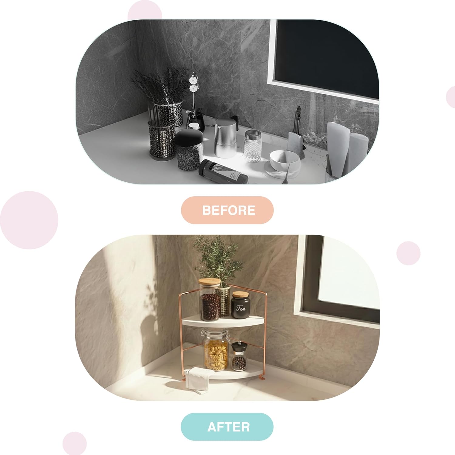 USAGE: This corner shelf is perfect for storing your cosmetics, makeup, hair products, shampoo, towel, soap, and more. Adds handy storage in bedroom, closet, laundry, office, kitchen, or pantry.