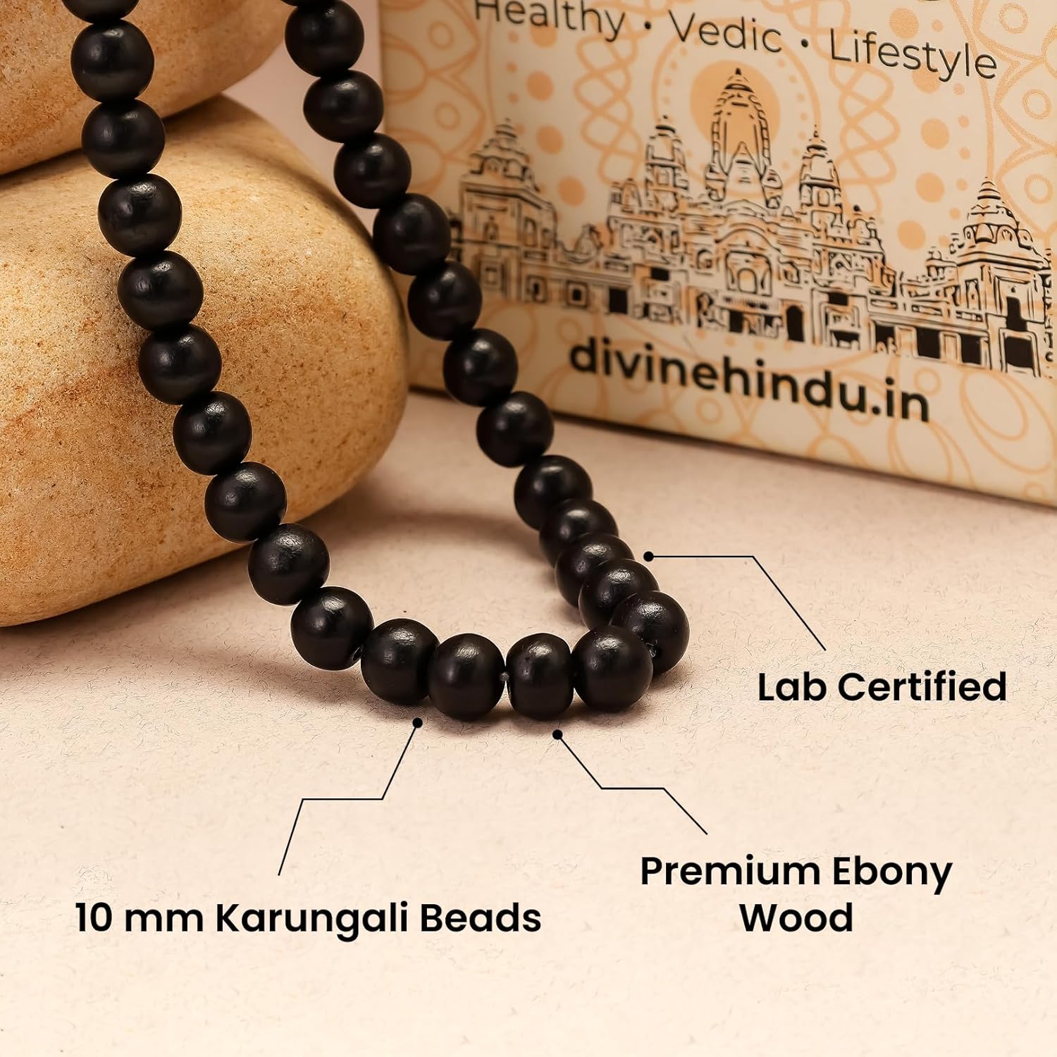 Divine Hindu Original Karungali Mala is crafted with 108 certified natural ebony wood beads, also known as Karungali, carefully hand-threaded with strong durable string. This sacred mala is ideal for meditation, japa, and daily spiritual practices, helping calm the mind and balance inner energy. Each bead carries natural vibrations of Karungali wood, believed to protect from negative energies while bringing peace, focus, and positivity. The smooth black finish and authentic texture make it not only a spiritual tool but also a meaningful traditional accessory for men and women. Use it during mantra chanting, pooja, or as part of your spiritual routine for improved focus and mental clarity. The natural ebony wood ensures lasting durability while retaining its spiritual essence.