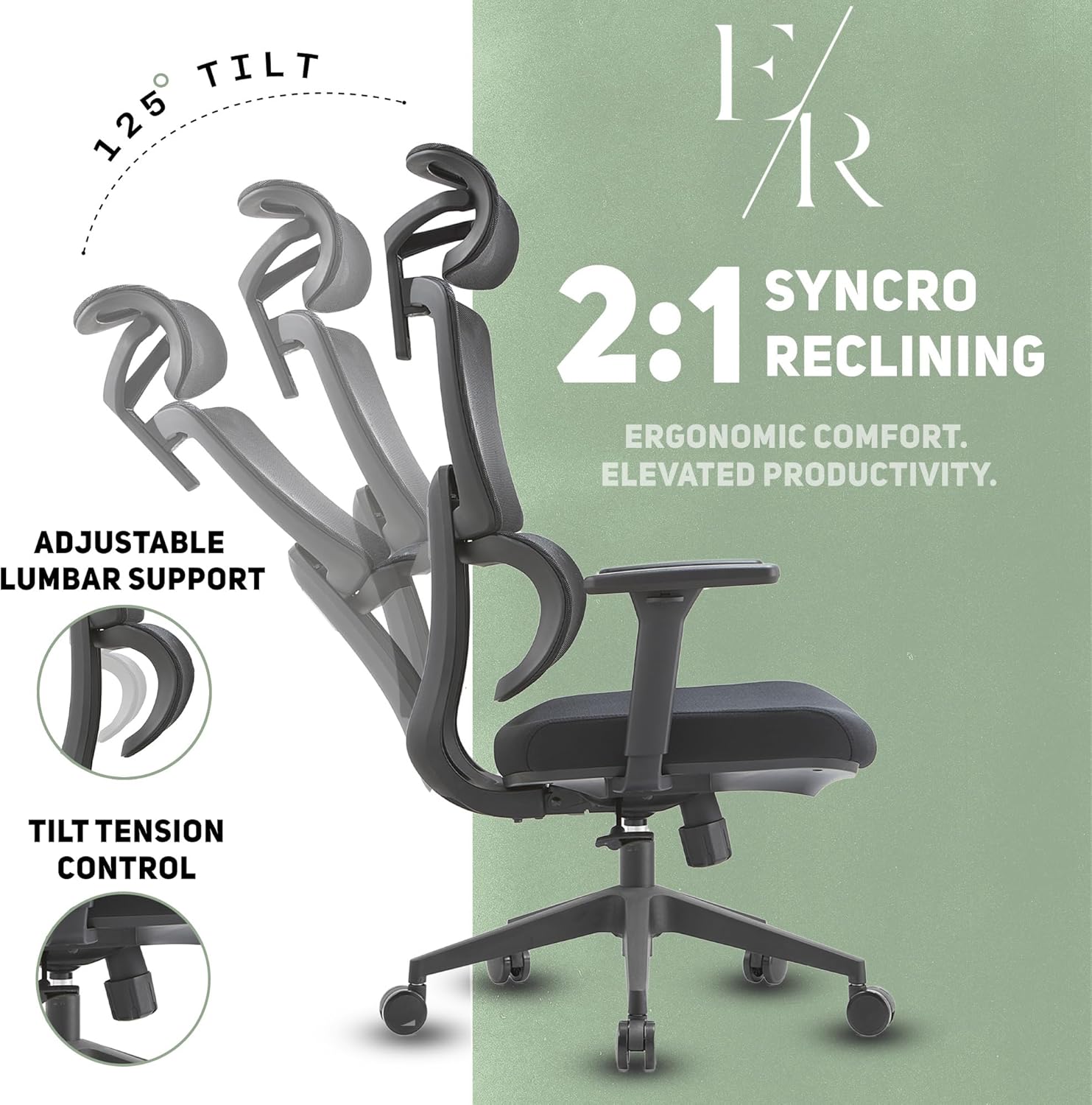 Headrest & Tall Back: The Ella Rhae premium office chair features a headrest to support you throughout your day.