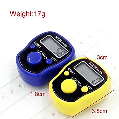 Small and compact design. LCD screen display. the circle round is adjustable. mechanically jumps by every press, quick reaction. reset button help to zero clearings. it is universally used as a counter in a public place such as in the dock, the bus station, also in daily use for counting the number.Scounter speed: depend on human’s reaction.Dimensionless size:3.8 * 3 *1.6 cm Color: we have 12 different colors, and Send as per availability,Note: this product with battery. led lights automatically turn off the automatic power-saving sleep function and more! Package includes: finger ring electronic tally counter.