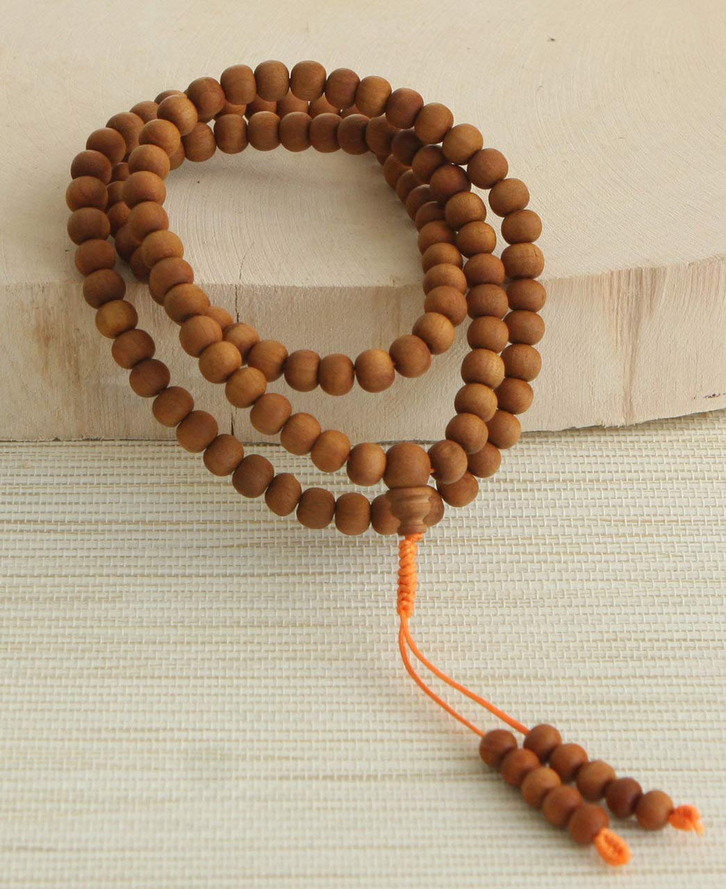 Material: Sandalwood Beads, Size: Bead size: 6 mm, Number of prayer Beads – 108