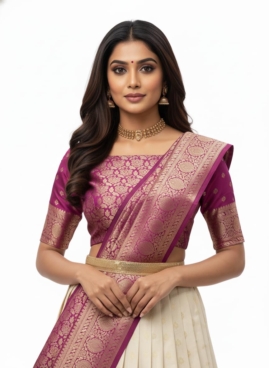 Introducing the exquisite RENVAANI FASHION Women’s Indian Traditional Unstitched Kanjivaram Kanchipuram Silk Pure Zari Weaving Lehenga Choli, accompanied by a Dupatta and an Unstitched Blouse Piece. Embrace the essence of timeless elegance and celebrate the rich heritage of Indian craftsmanship with this mesmerizing ensemble. Crafted with utmost care and precision, this Kanjivaram Kanchipuram Silk Lehenga Choli embodies the epitome of traditional Indian fashion. The pure silk fabric, renowned for its lustrous texture and luxurious feel, drapes gracefully and enhances your feminine charm. Each intricate detail is meticulously handwoven using the finest quality zari threads, creating a captivating interplay of shimmer and artistry. The Lehenga features a voluminous, flared silhouette that exudes grace and grandeur. Its exquisite zari weaving showcases intricate motifs inspired by Indian culture, adding a touch of regal opulence. The Choli, designed with a flattering neckline and tastefully crafted sleeves, perfectly complements the Lehenga’s allure. The set includes an Unstitched Blouse Piece, allowing you to customize it to your unique style and measurements.