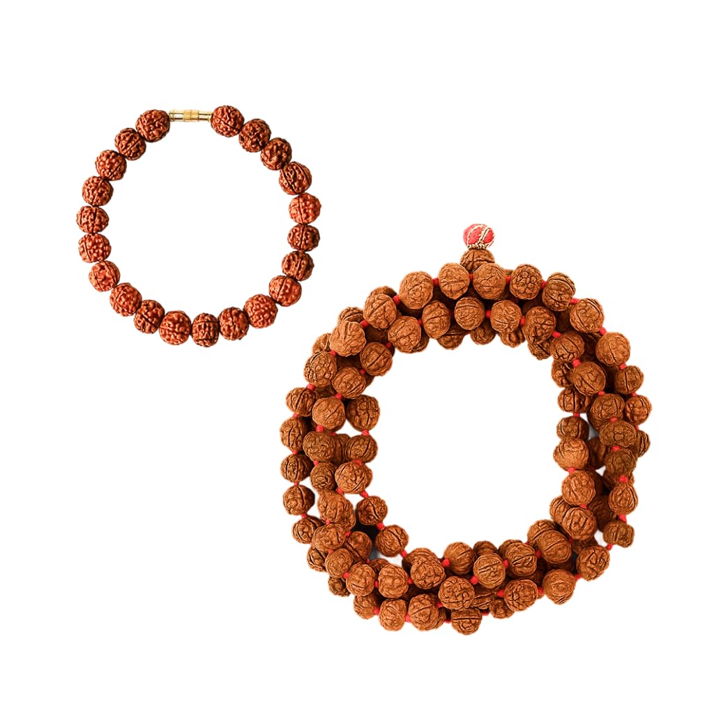 Shivaksh® Natural Unpolished 5 Mukhi Rudraksha Jap Mala (109 Beads) (8.00 mm) & 5 Mukhi Bracelet Combo