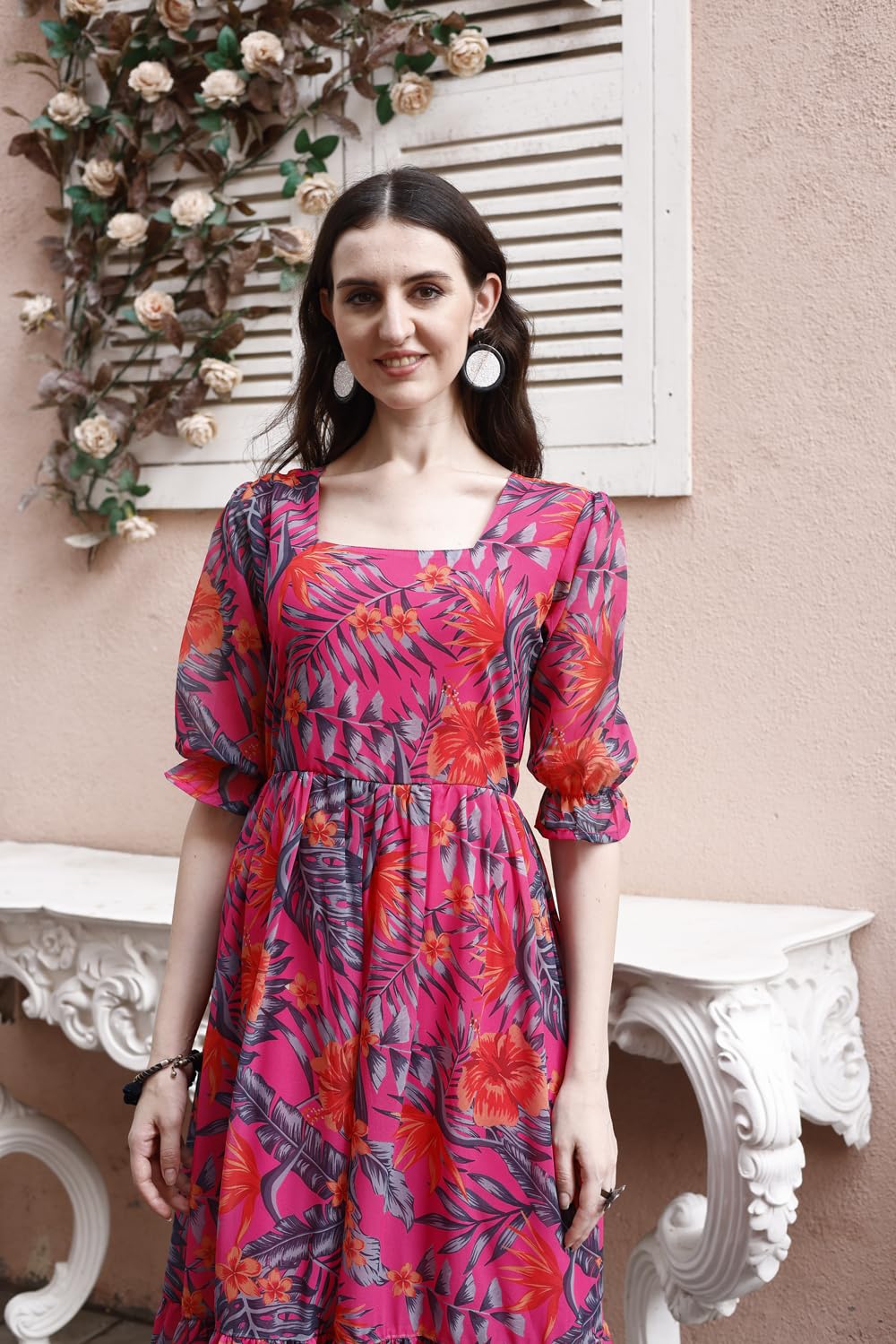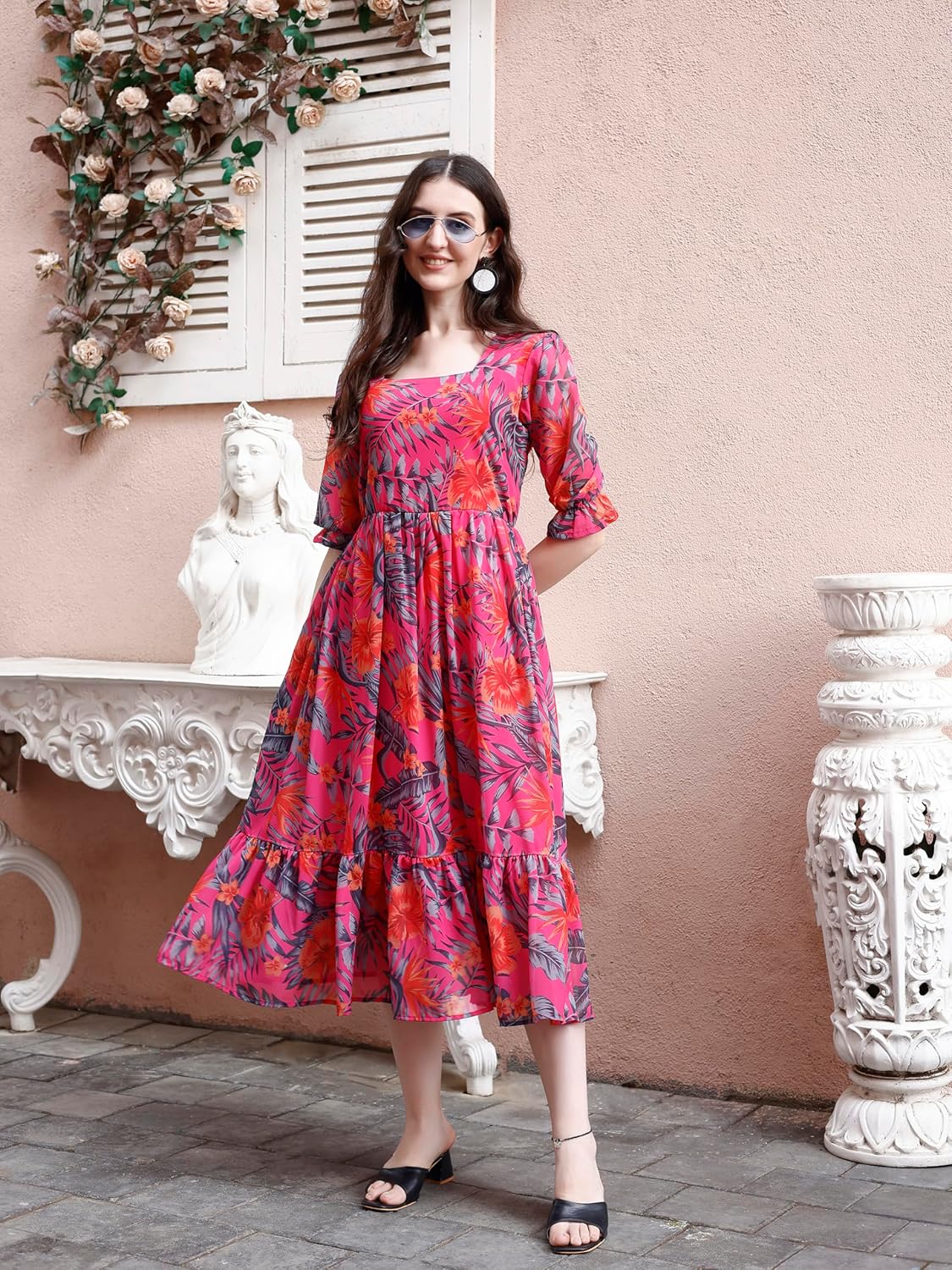 Customers find the dress to be of high quality with good georgette fabric that’s soft and breathable, and appreciate its versatility for both casual and special occasions. The dress maintains its color after washing, and one customer notes the half sleeves provide comfortable coverage. Customers consider it an affordable summer dress that offers good value for money.