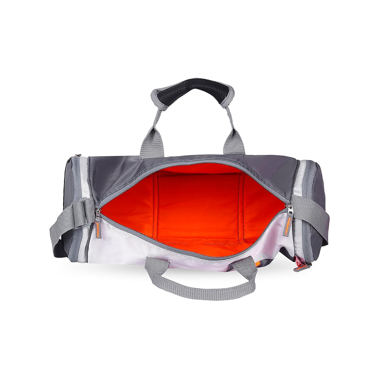 VERSATILE DESIGN: Stylish grey and orange duffel bag with multiple compartments, perfect for gym, sports, and daily activities