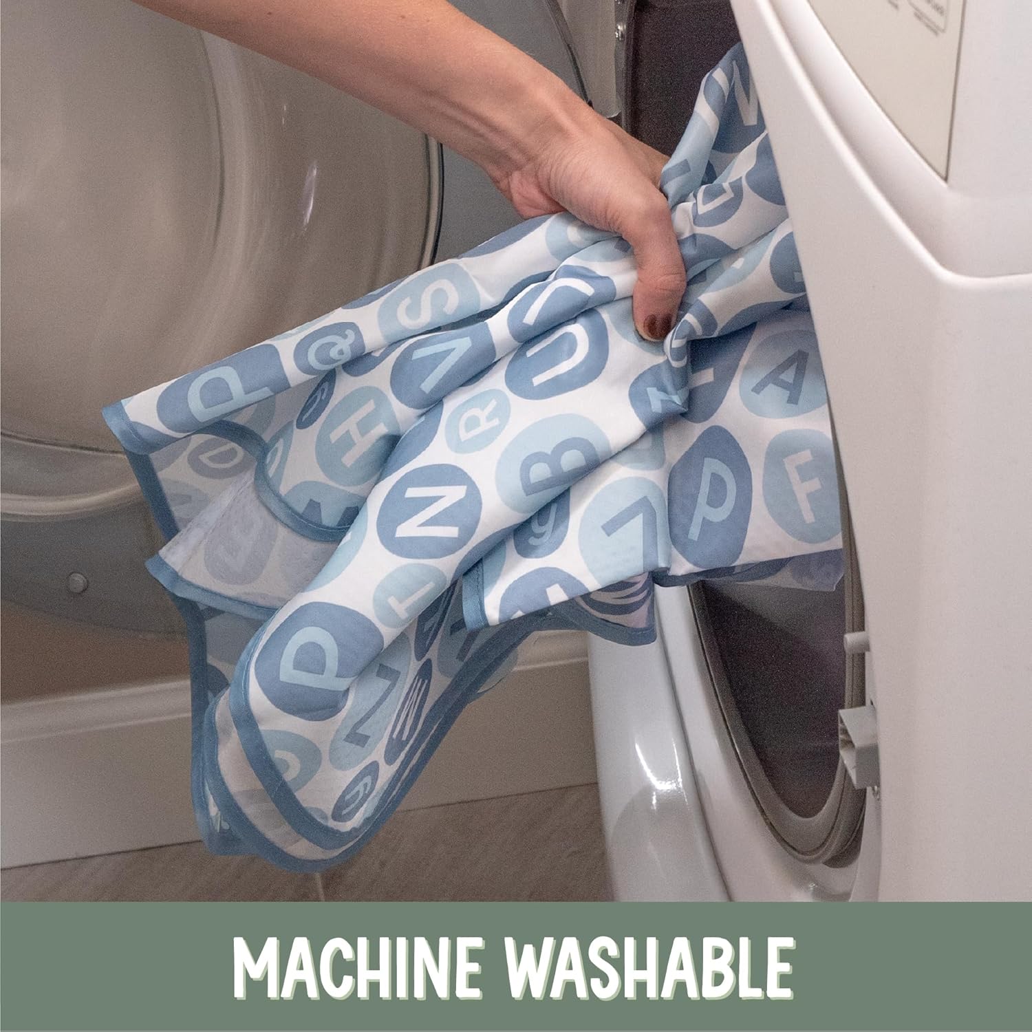 Durable, reusable, and portable, the fabric splash mat is the perfect addition to your diaper bag and baby essentials; easily wipe clean with baby wipes for a quick on-the-go clean up