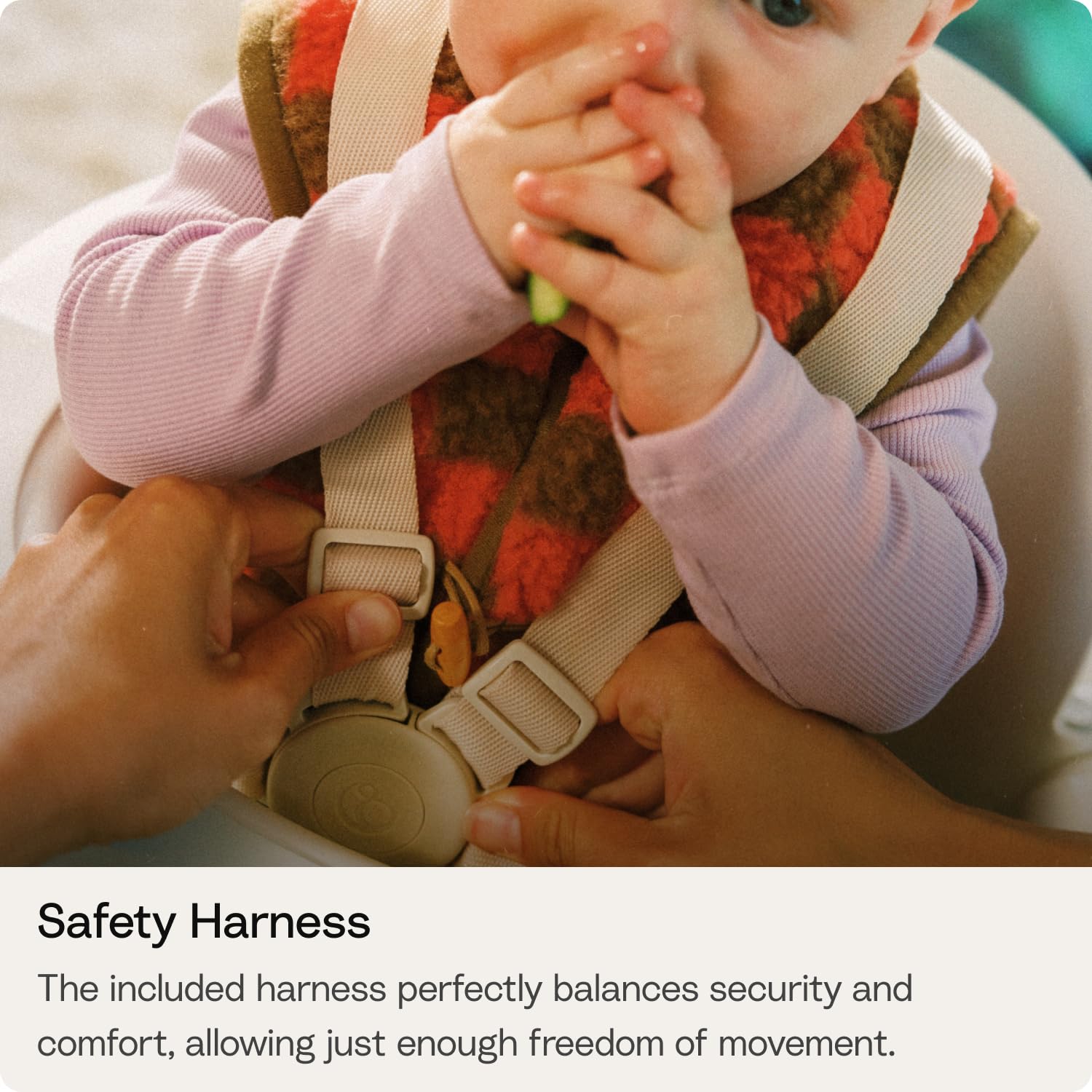Easy to Clean: The dishwasher-safe tray, machine-washable safety harness, and wipeable surfaces make mealtime and playtime simple to maintain, helping busy families keep the chair hygienic