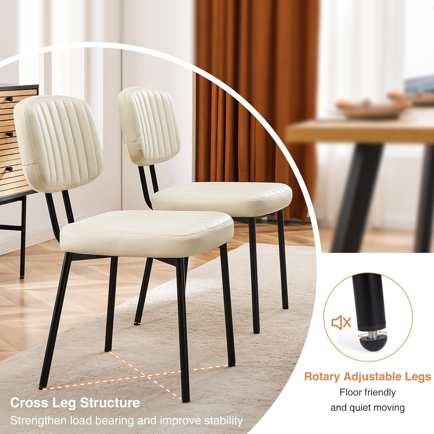 High-Quality and Sturdy: Beige white upholstered dining chairs feature metal legs for strong support, with a maximum weight capacity of 275lbs. The bottom of the chair is equipped with adjustable and scratch resistant foot pads, which can level the chair according to the ground while protecting the floor, increasing the stability of the chair, and providing a comfortable seating experience