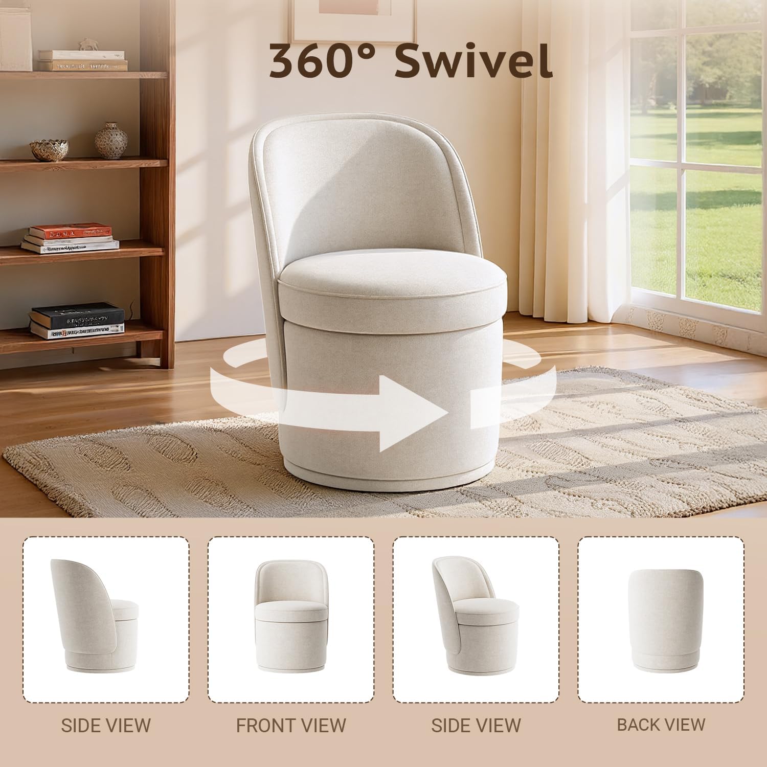 ACCENT CHAIR WITH HIDDEN STORAGE: The round accent chair is equipped with a hidden storage compartment that easily holds everyday items such as books, blankets, magazines, and remote controls, helping your living room or bedroom stay neat and organized. The internal storage space is easy to access yet completely concealed when not in use. The reading chair is an ideal choice for households that value comfort and a sense of order.