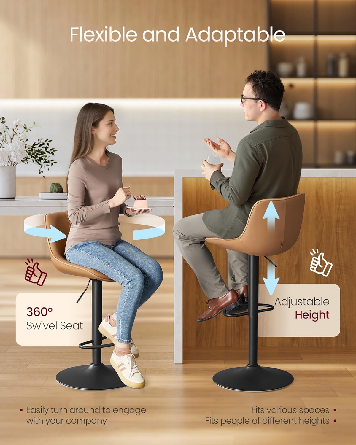 Comfortable & Adjustable: Sink into the cozy comfort of our bar stools, featuring an ergonomic one-piece seat that contours to your back and comfy foam for unmatched relaxation. The adjustable height fits various spaces and people of different heights