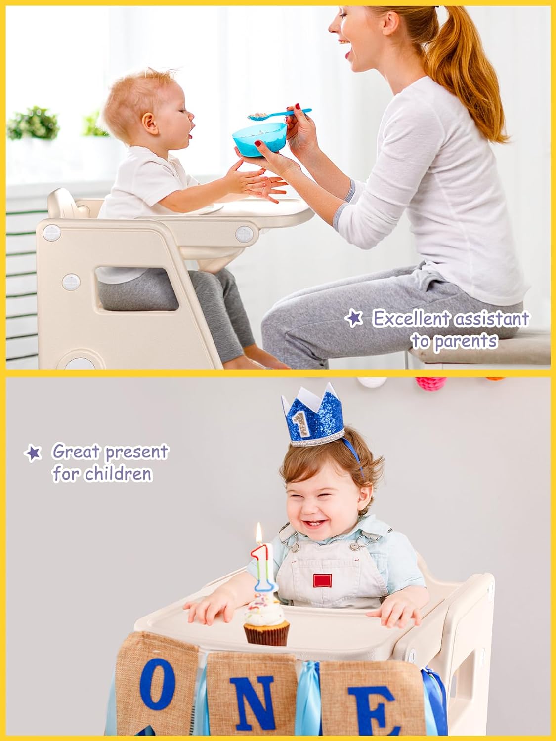 3-IN-1 CONVERTIBLE HIGH CHAIRS: Functions as a baby high chair, baby feeding chair, and toddler tower. One chair that grows with your child for mealtime, play, and learning.