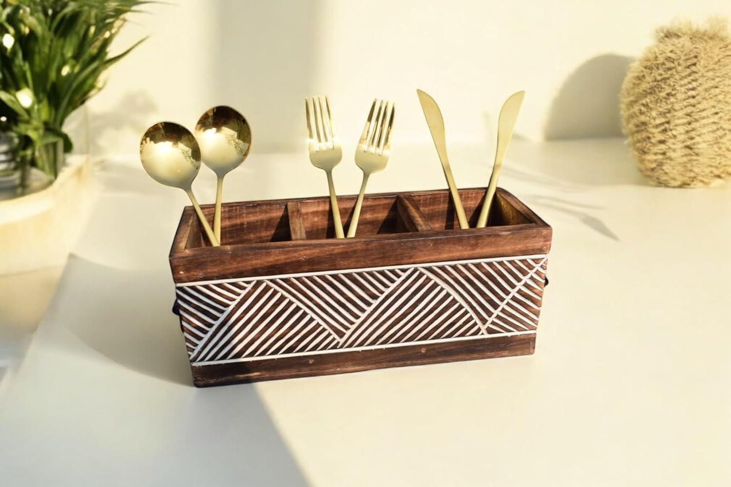 Great as a cutlery holder for dining table fancy spreads or family meals; a dependable spoon stand wooden accent that blends functionality with natural beauty.