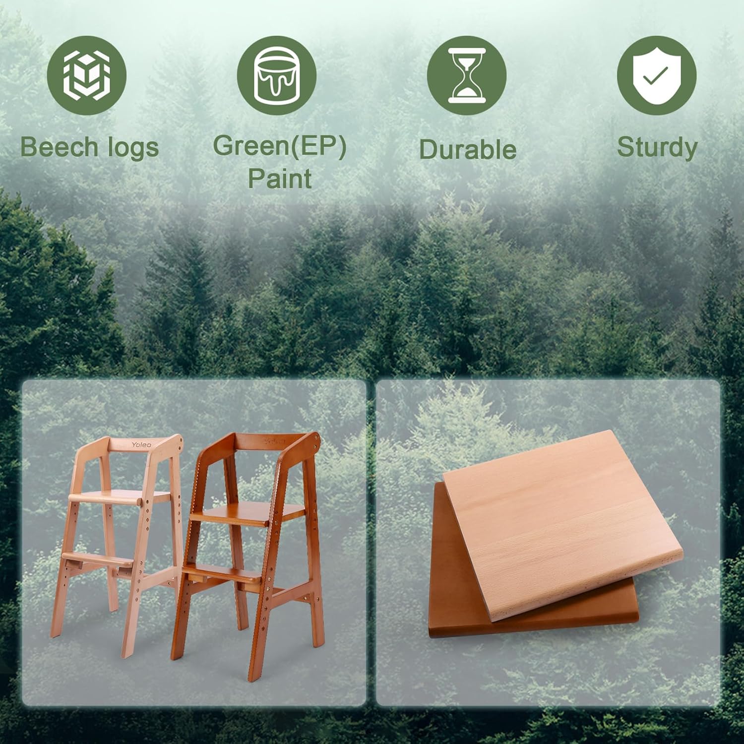 ⭐Reliable and Safe: The toddler high chair is made of solid beech wood, which is hard and has Strong punching resistance for excellent stability, trapezoid-structure make the high chair more stable and sturdy. All the raw materials are strictly selected.